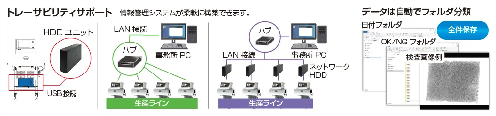 - ▲クレームの入った商品の生産日の検査画像を確認することで、消費者へ明確な回答を行うことができます。