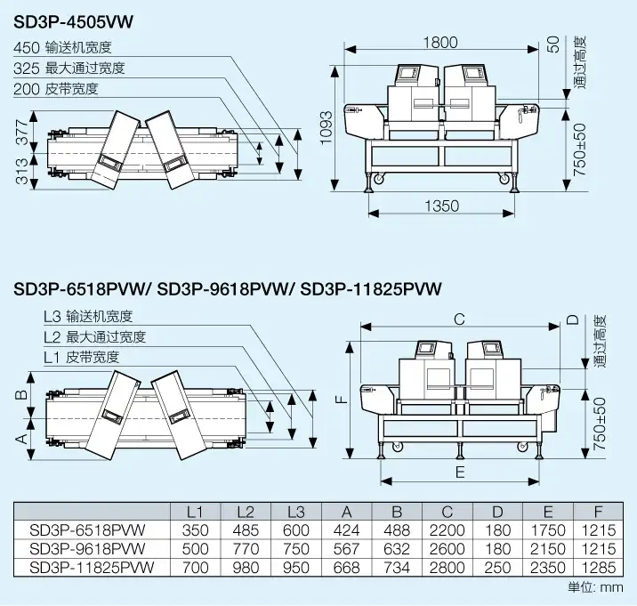 | 最大通过高 (mm) | 50 | 180 | 180 | 250 | |