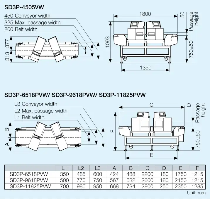 | Maximum passage width(mm) | 325 | 485 | 770 | 980 | |